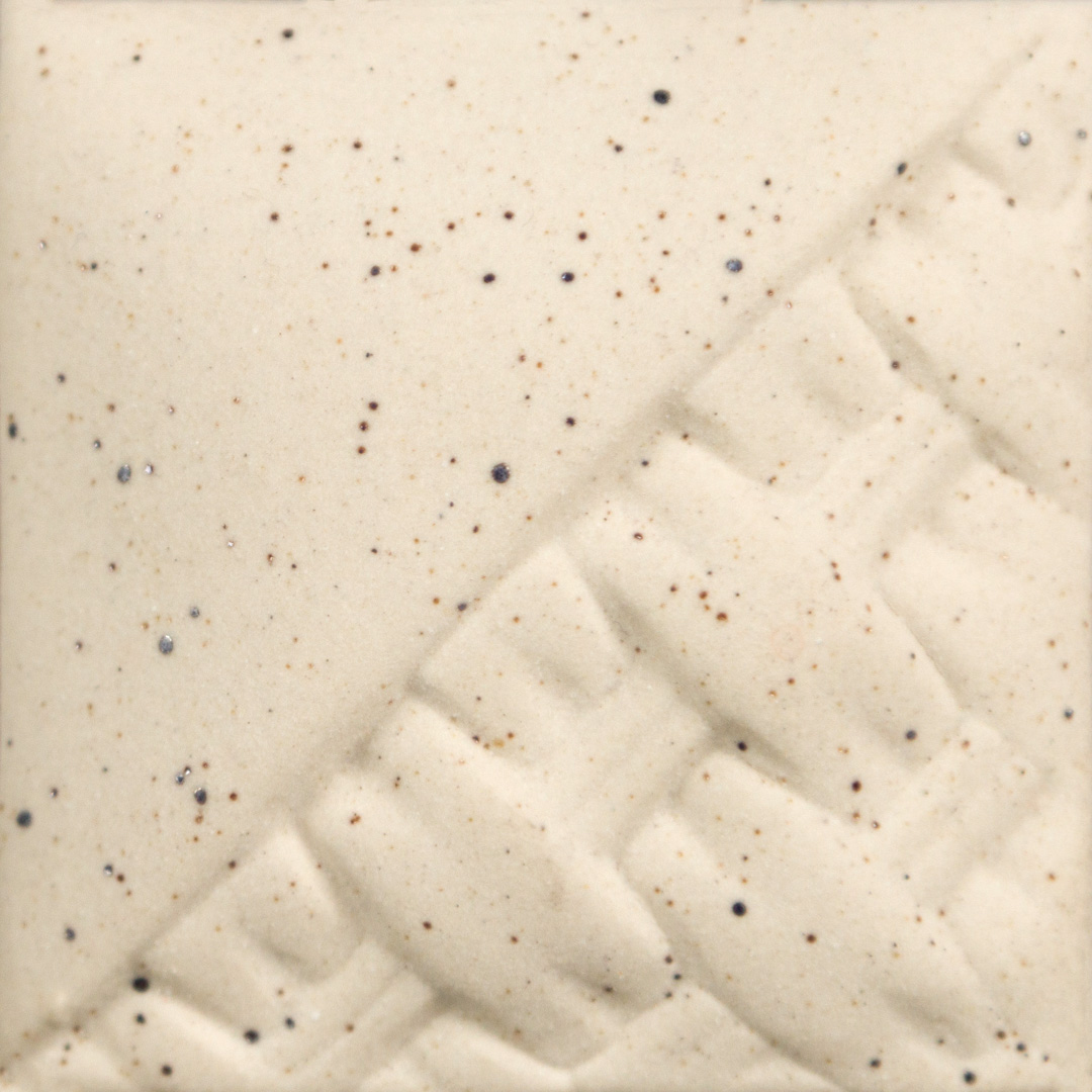 Speckled Buff Engobe brænder til en mat elfenbensfarvet overflade med brune spekler.