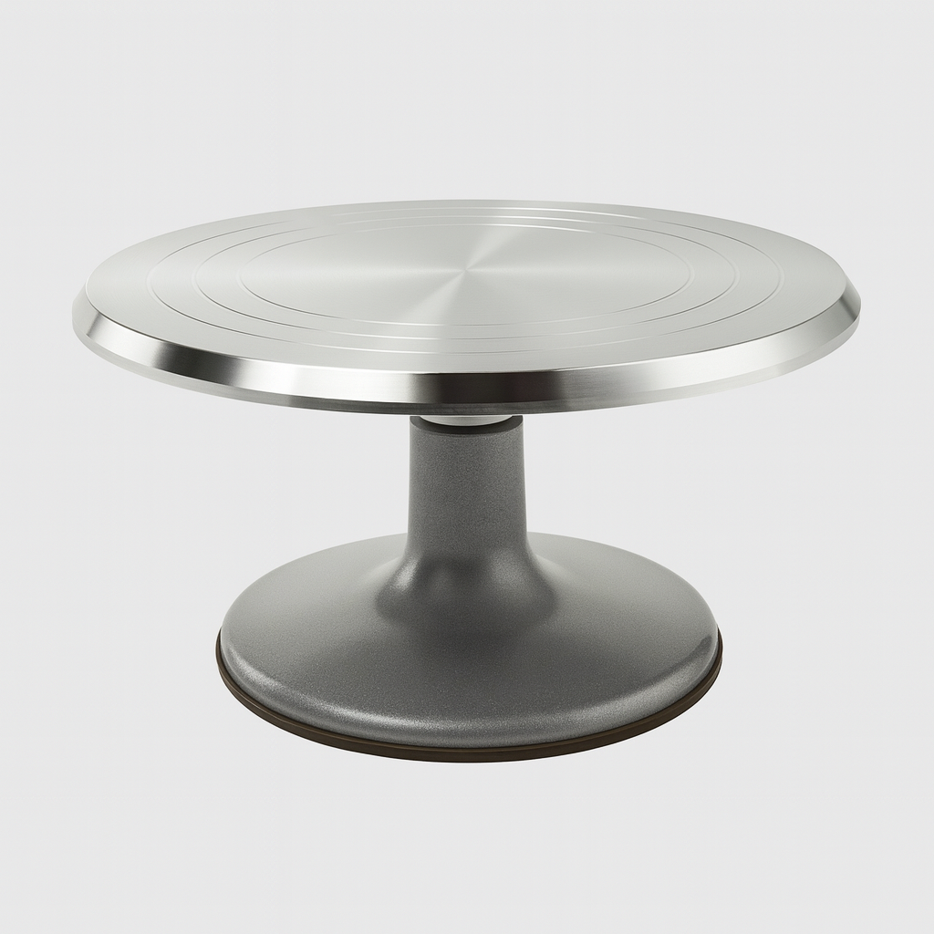 Den glatte metaloverflade er udstyret med indgraverede cirkelmarkeringer, der hjælper dig med at centrere og forme dit ler præcist og ensartet. Det gør arbejdet lettere, hurtigere og mere professionelt — uanset om du arbejder med små, delikate emner eller større projekter.