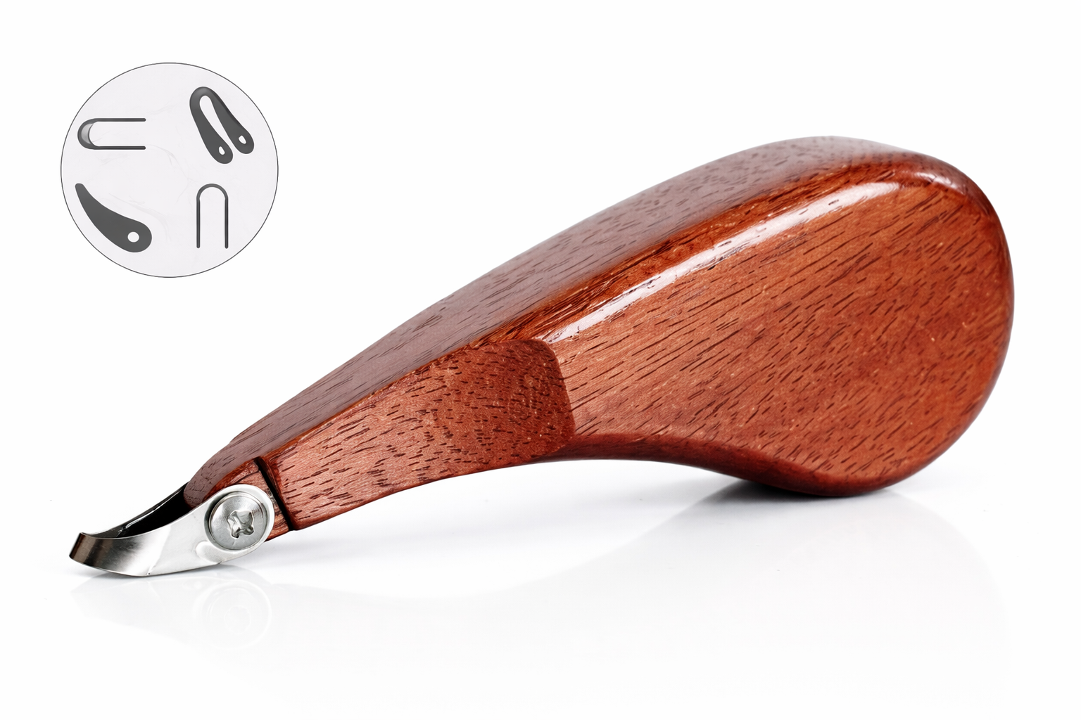 Værktøjet ligger godt i hånden og giver god kontrol under arbejdet, uanset om du arbejder med drejede emner, pladeteknik eller skulptur.