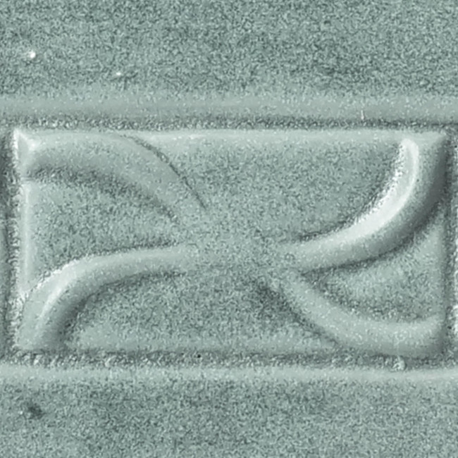 På teksturerede overflader samler glasuren sig i mørkegrønne toner, mens højdepunkterne bryder i lyse grå nuancer, hvilket giver ekstra dybde og karakter til denne uigennemsigtige glasur.