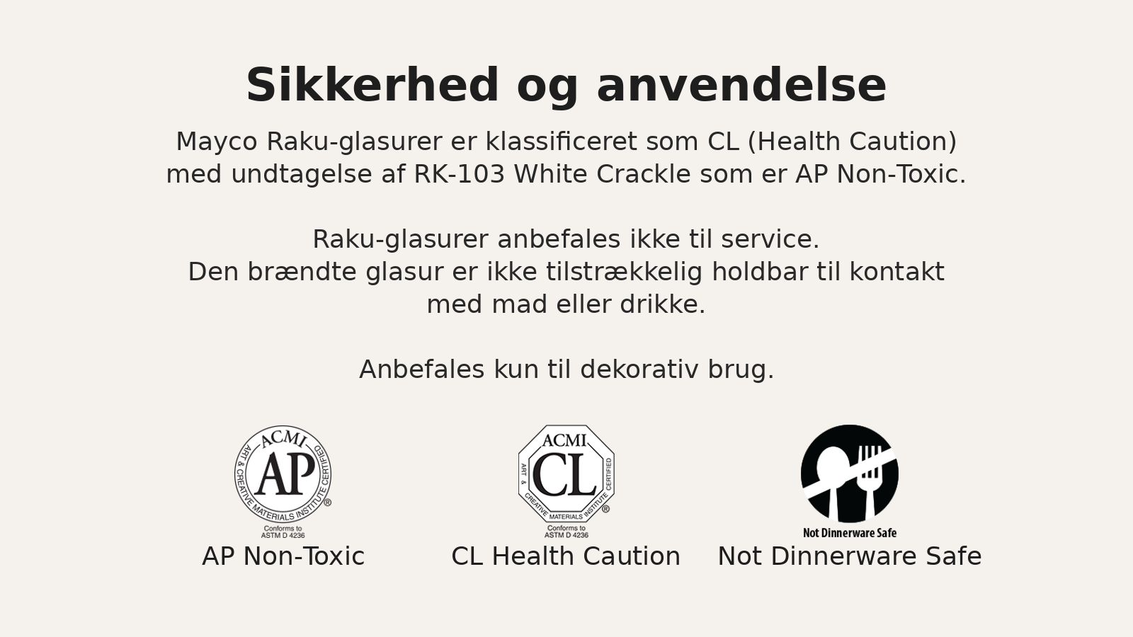 Det anbefales altid at teste glasuren på en prøveflise, før den bruges på færdige emner.